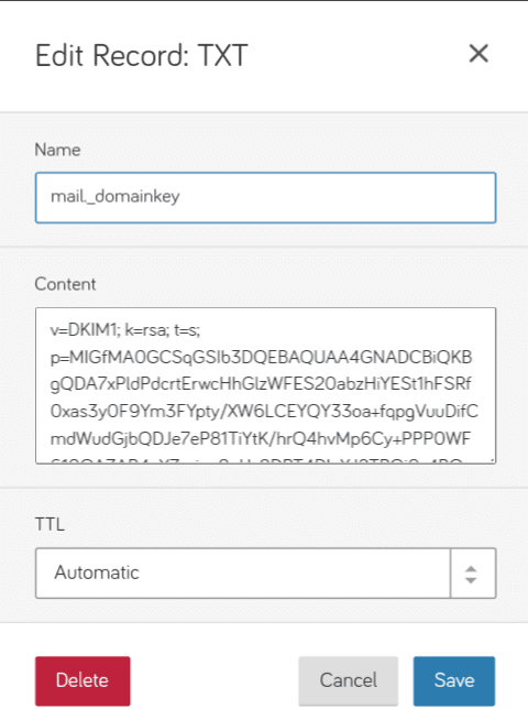 3. Find the mail._domainkey and the SPF text record. See picture for reference.